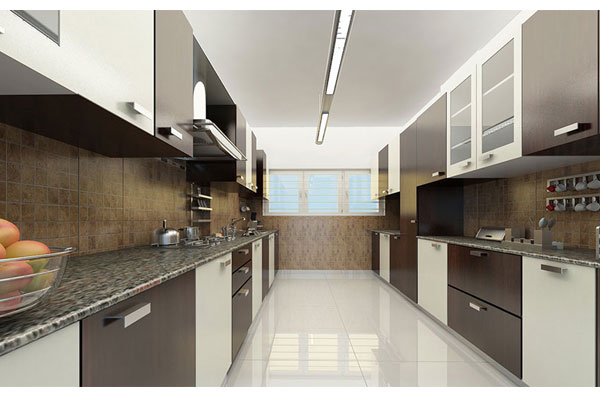 The Parallel kitchen has a workspace large enough for one cook. In this kitchen floor plan, the work domains face each other on parallel walls, creating a small triangle.